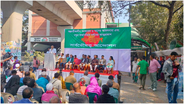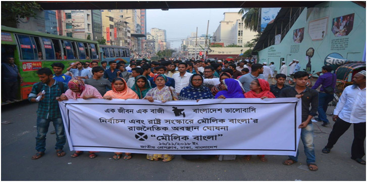 মৌলিক বাংলার নেতাকর্মীরা নির্বাচন কমিশনের সামনে অবস্থান ধর্মঘট